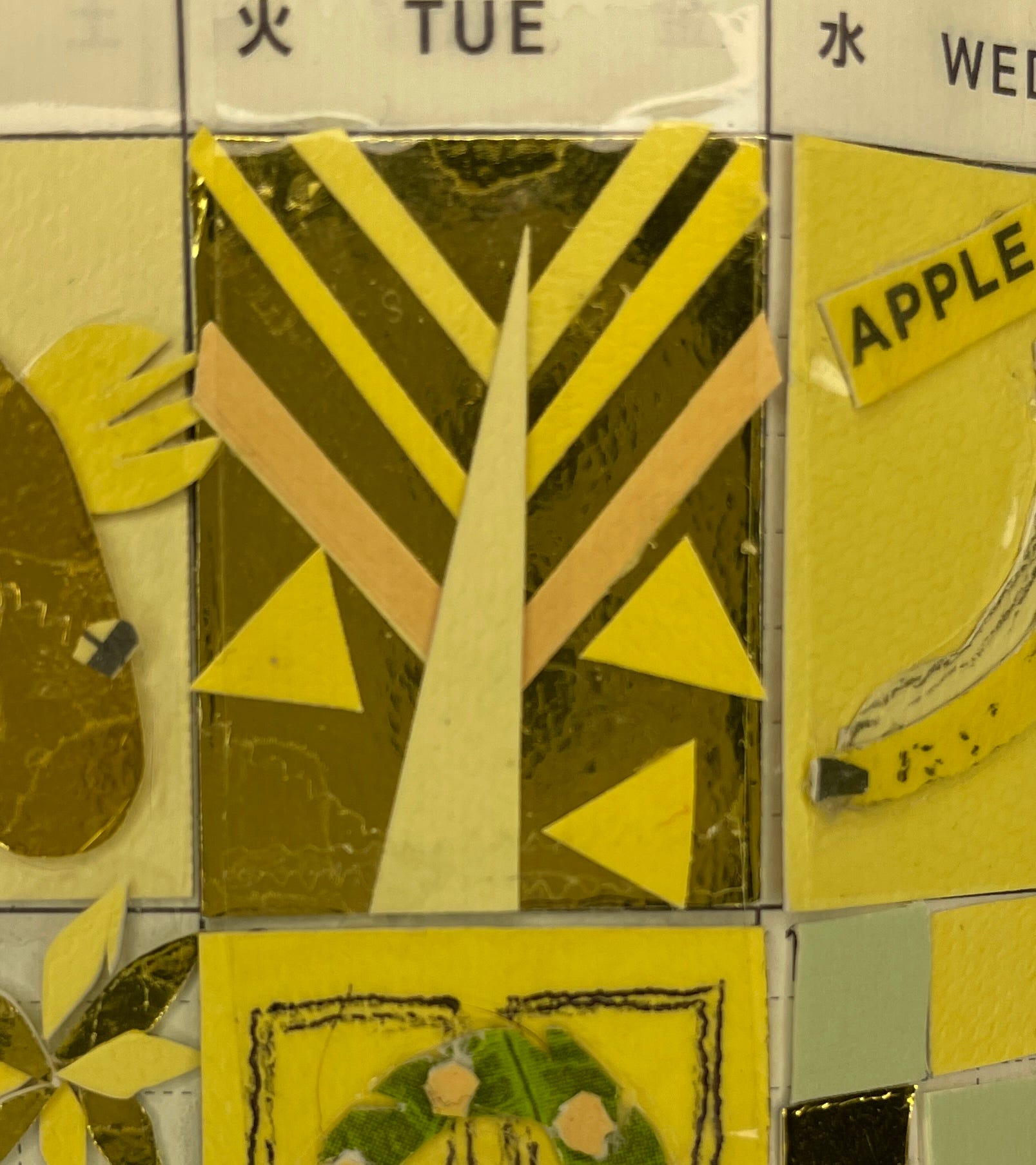 From the 21st on, December was a bust, tiny art-wise. I ran out of momentum and, moreover, time, even if I did want to do art at the end of the day. Plus, my Xacto started acting up—the blade started pulling out of the holder—which made everything feel dangerous. So I took an unintended break, but now (January 3) I’m back at it, only with what I think will be fewer restrictions. Stay tuned for those. For now, here’s what I was thinking when I did December 2’s tiny work of art.