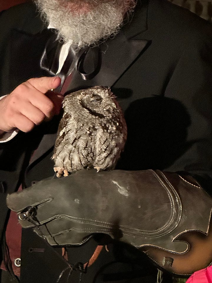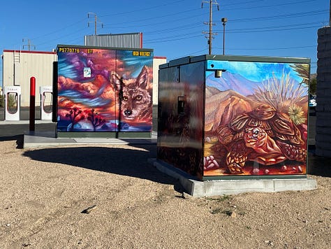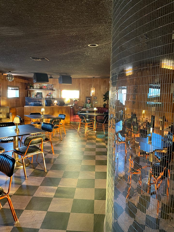 (Row 1, left to right: my dad, recovering from a stroke and at a community exercise class. This gorgeous tile at LA Union Station. The sky over our city last month—look at this rippling clouds. Row 2, left to right: The Huntington Gardens’ “Strange Science” party transforms a pretty oasis into something really spooky; these great murals in Yucca Valley, right between to the Carl’s Jr. and the fantastic Grocery Outlet there, where you can find everything, especially stuff you didn’t know you needed or wanted. What is with that coyote? Getting to climb in Joshua Tree again. Astonishing. Row 3, left: The disco-ball wall at the Copper Room. Great food, great drinks, great company. Row 3, right: Getting this meet this screech owl. Her name is Freya and she has a cataract and one of her wings is all messed up from an encounter with a chain saw. She’s still great.)